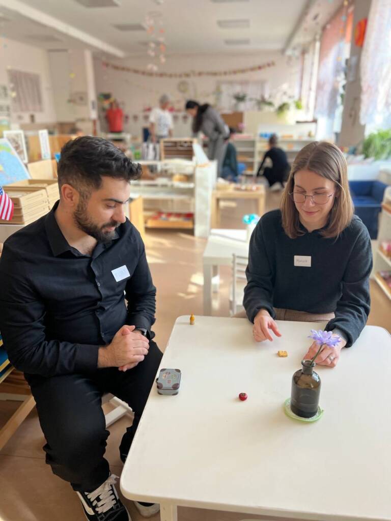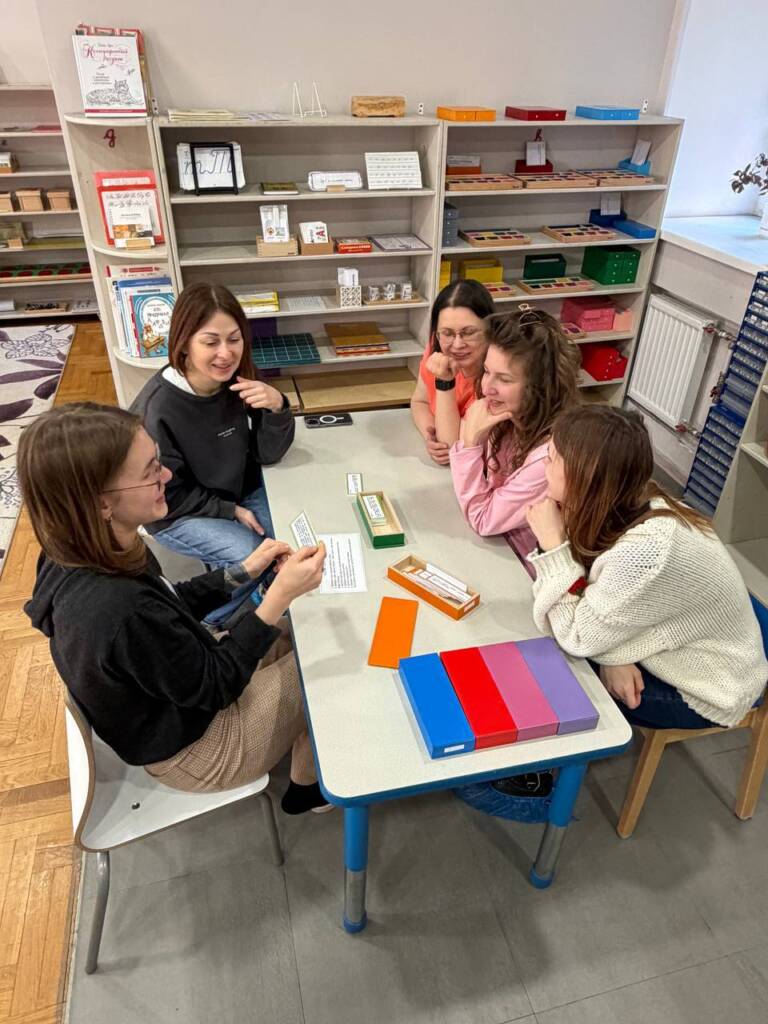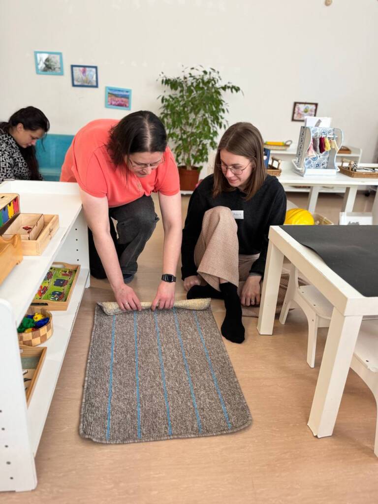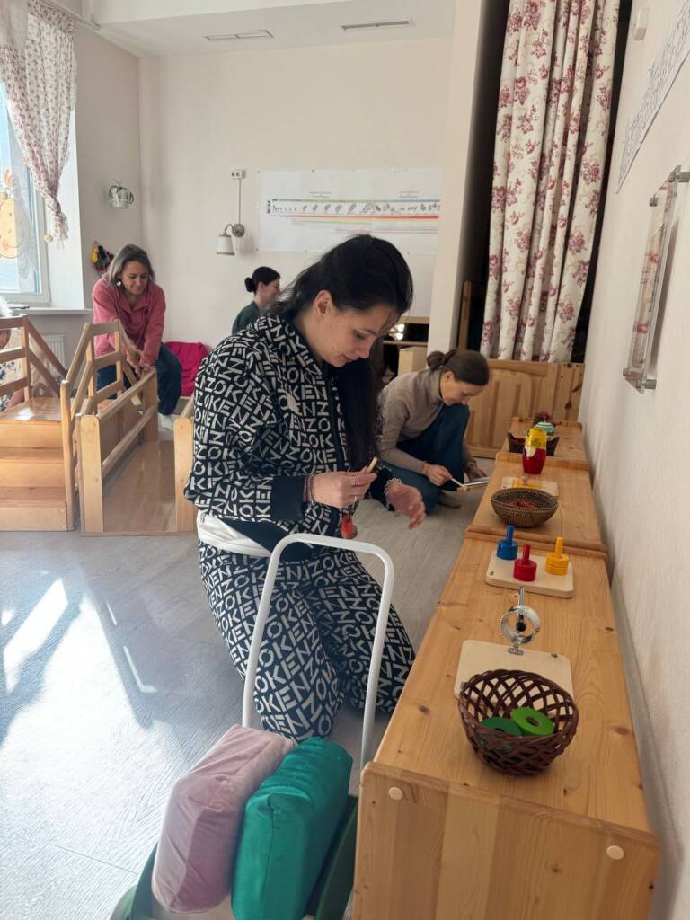 Второй день – непосредственная работа с материалами в классе, с которыми каждый день взаимодействуют дети,чтобы вновь понять и пережить сколько мудрости, стойкости и интереса в душе ребенка. А также, чтобы понять как связаны между собой материалы классов по развитию возраста и почему так важен цикл.
